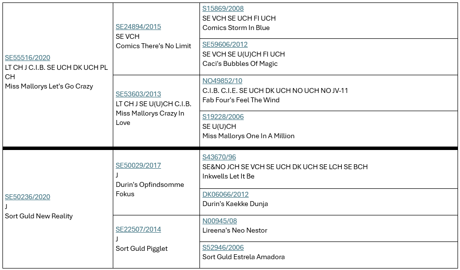e. LT CH C.I.B. SE UCH DK UCH PL CH Miss Mallorys Let´s Go Crazy, “Chippen”